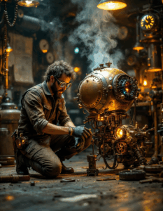 Wonderpiks präsentiert KI-generierte Kunstwerke, die industrielle Ästhetik mit viktorianischer Eleganz, Fantasie und erzählerischer Tiefe verbinden.