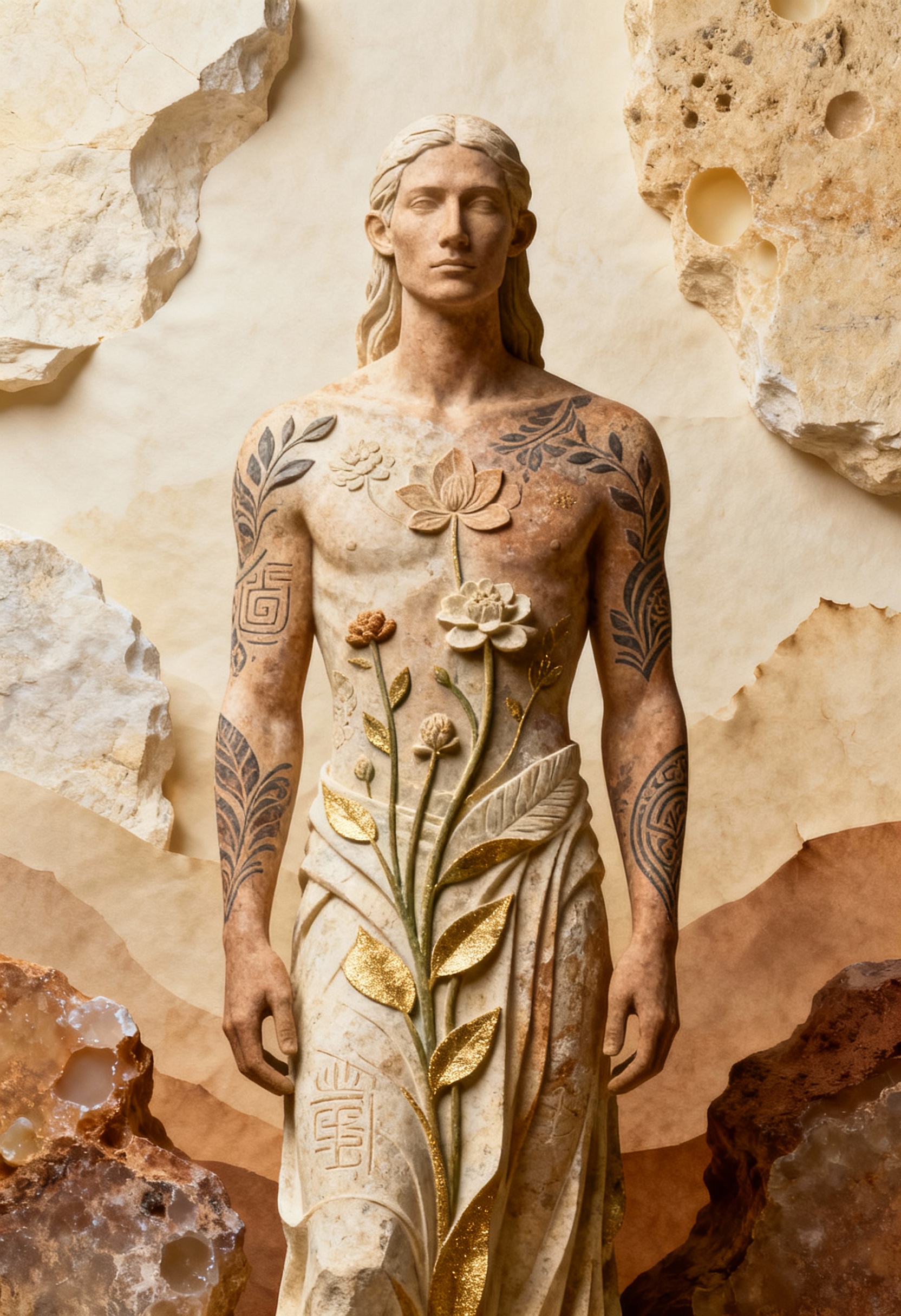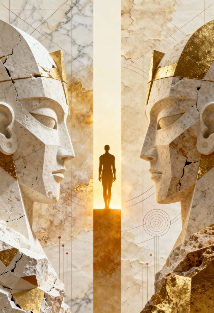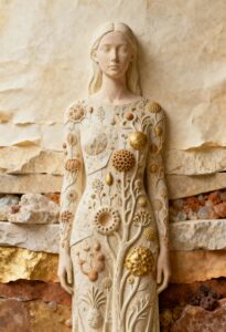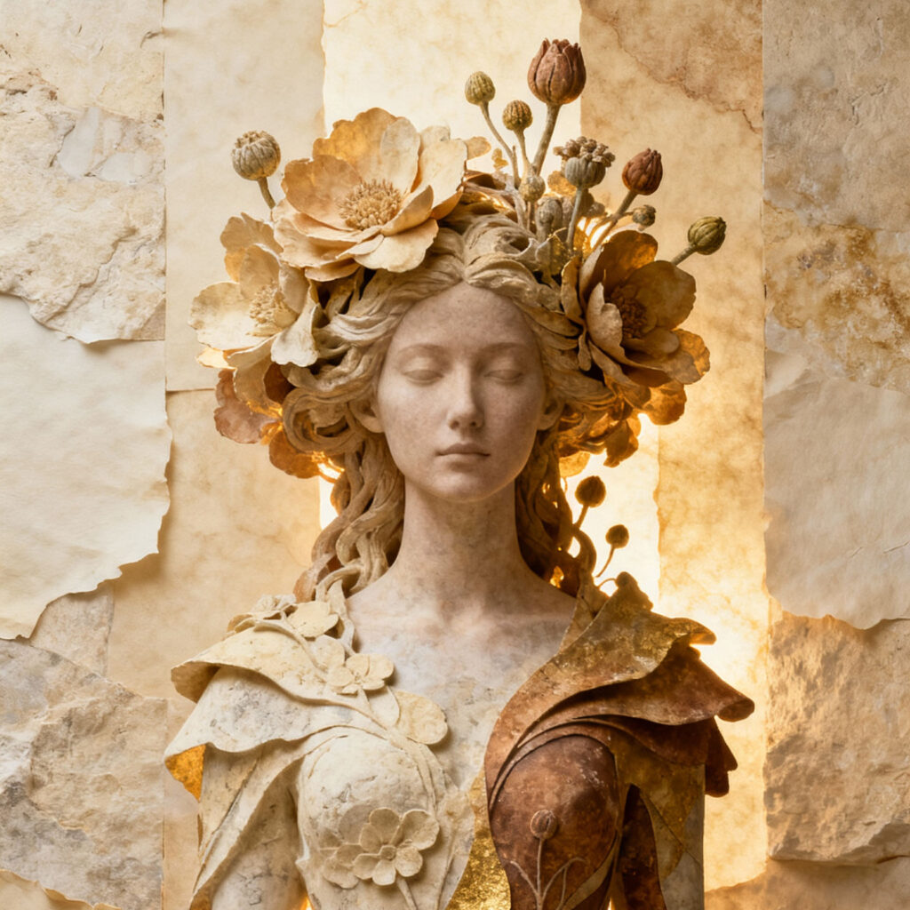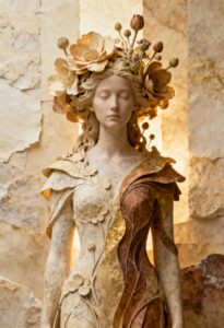 Wonderpiks präsentiert KI-generierte Kunstwerke, die menschliche Formen mit archaischer Materialität, symbolischer Tiefe und zeitloser Abstraktion verbinden. Skulpturale Körper, gebrochener Stein und goldene Akzente schaffen Bildräume zwischen Präsenz, Idee und innerer Struktur.
