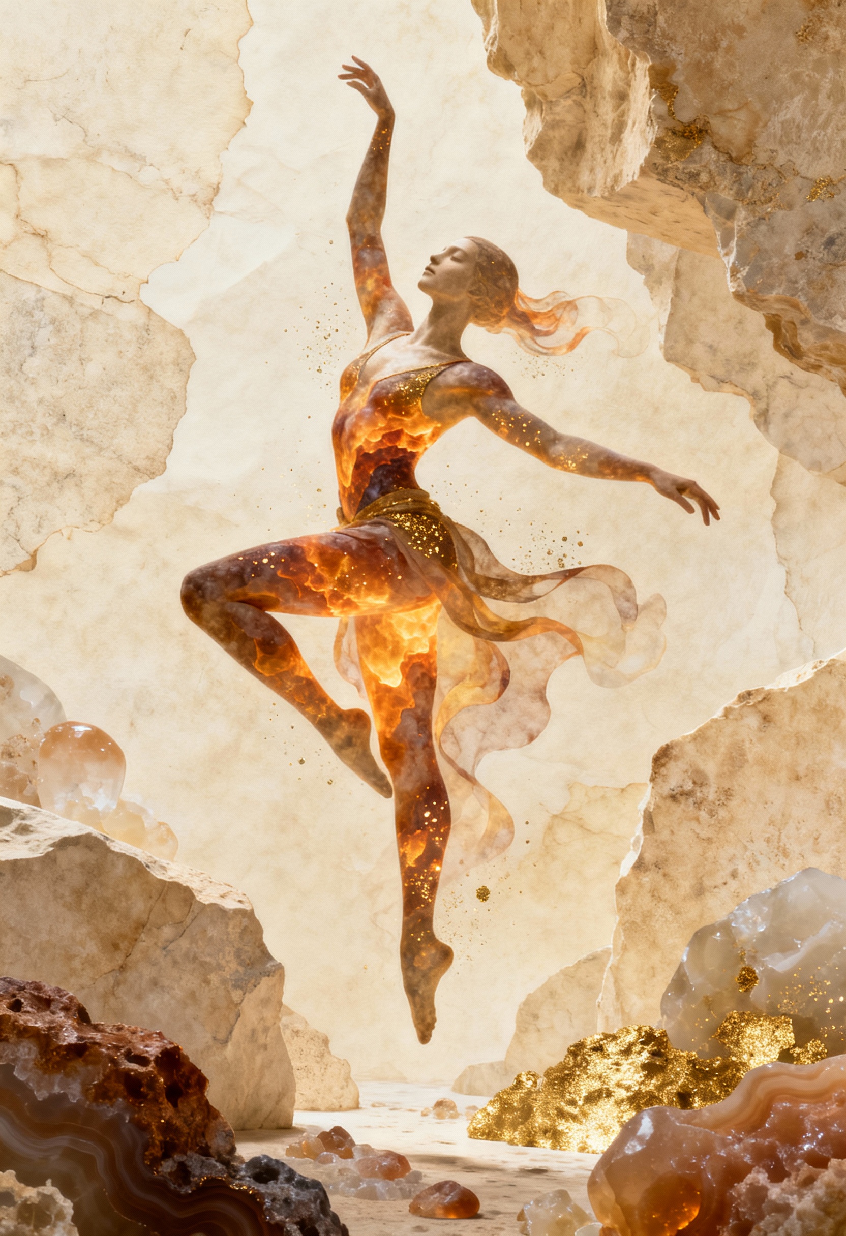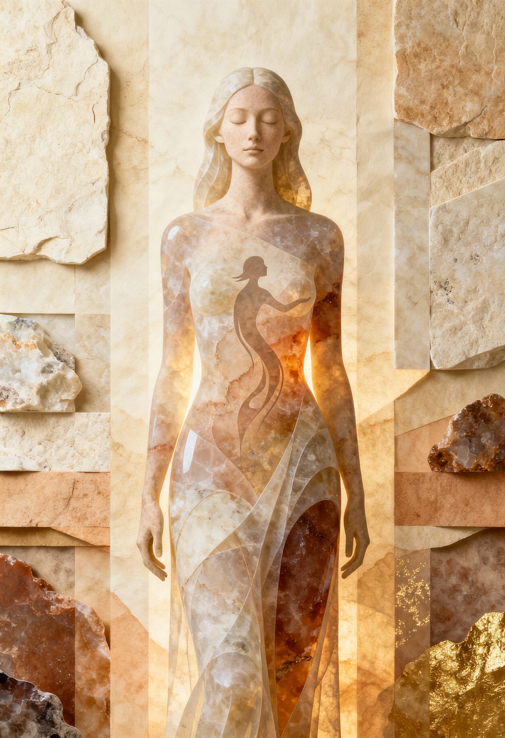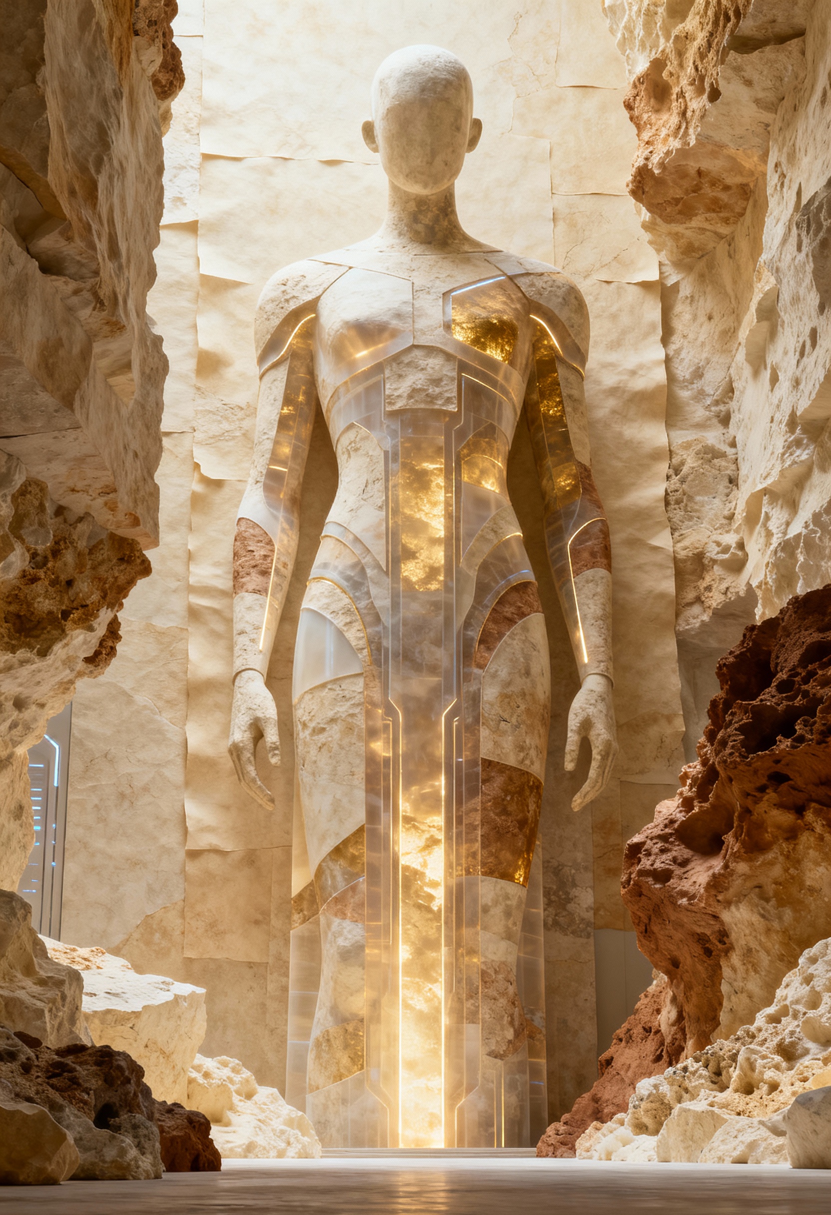 Wonderpiks präsentiert KI-generierte Kunstwerke, die menschliche Formen mit archaischer Materialität, symbolischer Tiefe und zeitloser Abstraktion verbinden. Skulpturale Körper, gebrochener Stein und goldene Akzente schaffen Bildräume zwischen Präsenz, Idee und innerer Struktur.