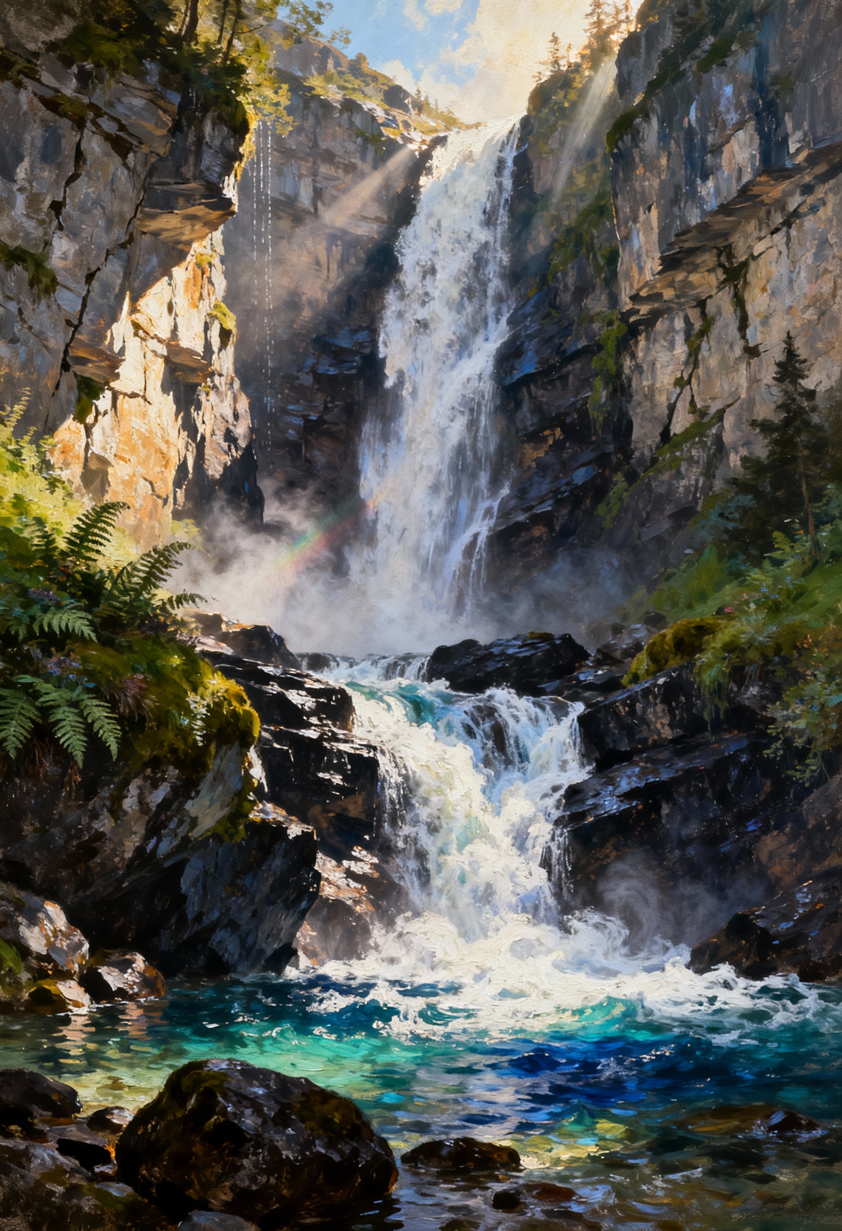 Sie entstehen durch den Einsatz künstlicher Intelligenz, sorgfältige visuelle Komposition und digitale Veredelung – als künstlerische Interpretation natürlicher Landschaften in einer neuen, technologischen Gegenwart.